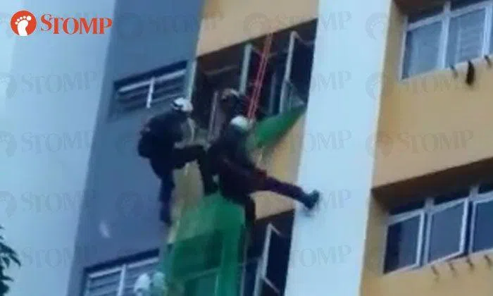 In the video Yanni sent, Singapore Civil Defence Force (SCDF) personnel can be seen deploying a safety net from the eighth floor.
