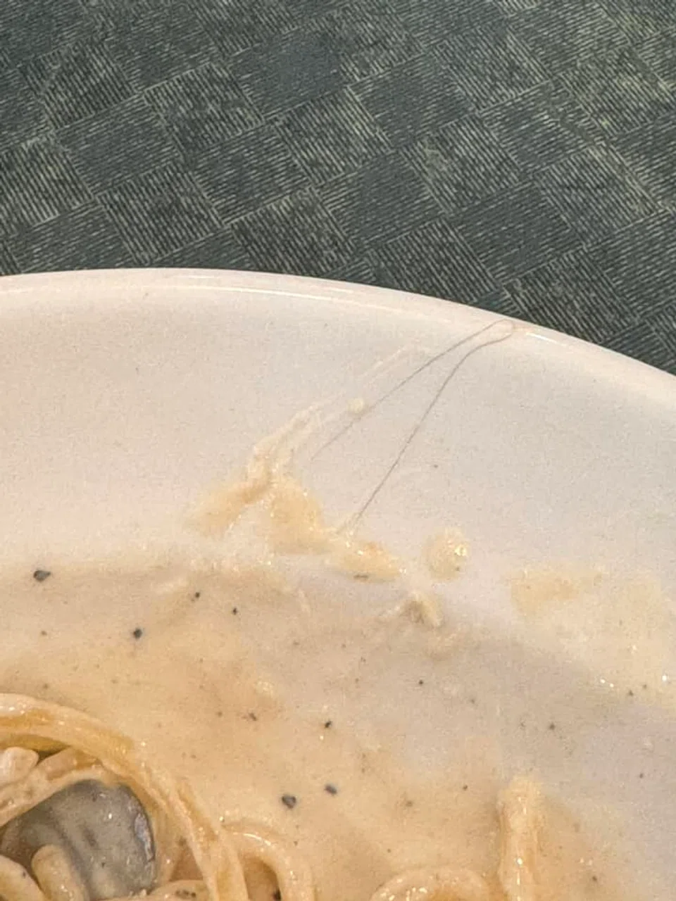 To make it worse, the customer said she found a strand of hair in her pasta.