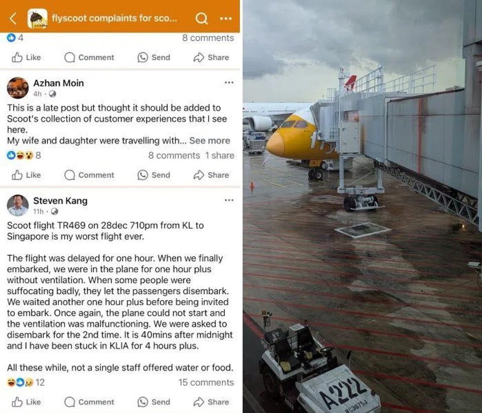 Calling it his "worst flight ever", Facebook user Steven Kang posted on Dec 29 at 1.17am: "The flight was delayed for one hour. When we finally embarked, we were in the plane for one hour plus without ventilation. When some people were suffocating badly, they let the passengers disembark.