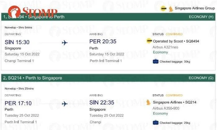 She explained what happened: "Booking was done via Singapore Airlines for a return flight to Perth.