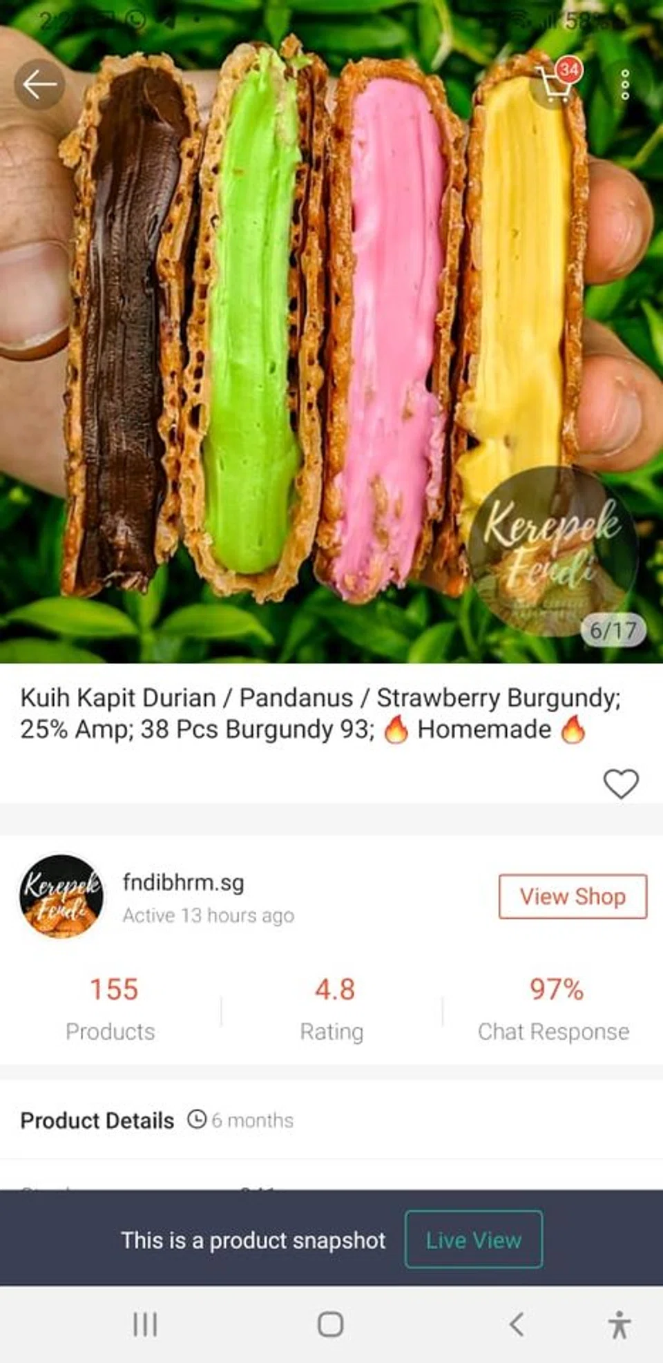 Stomper Sherly shared with Stomp that she had ordered four bottles of kuih kapit from Malaysia-based seller fndibhrm.sg on Feb 1 and paid a total of $52.15 for them.