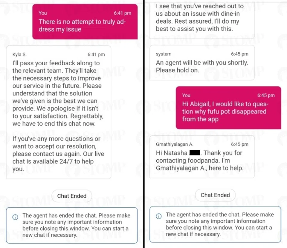 She added: "I'm reaching out to Stomp as a last attempt and to warn others of the potential for Foodpanda to simply remove the promotion in the middle of your meal.