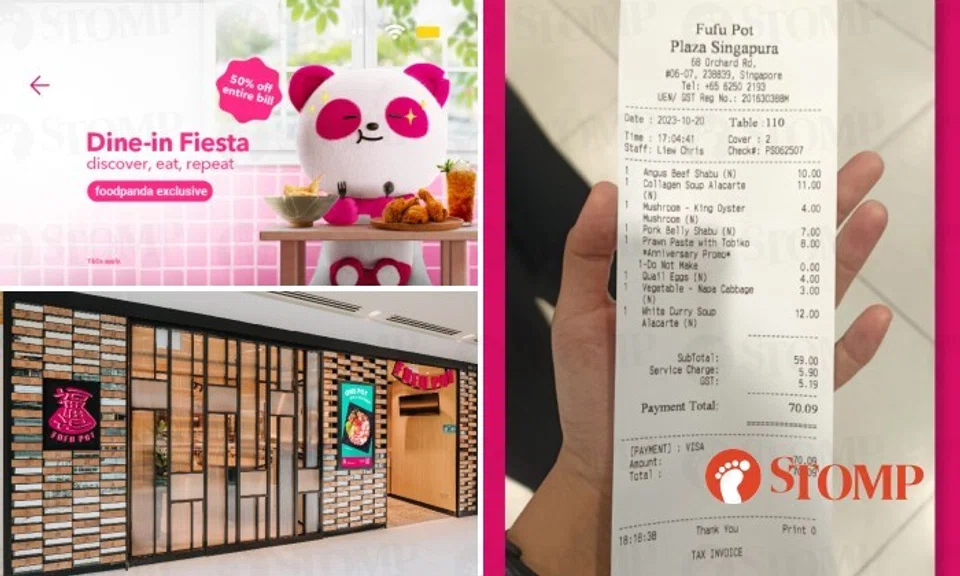 "On Oct 20, I went to FuFu Pot at Dhoby Ghaut to have a meal because Foodpanda had a dine-in promotion where it was 50 per cent off," recounted the Stomper.