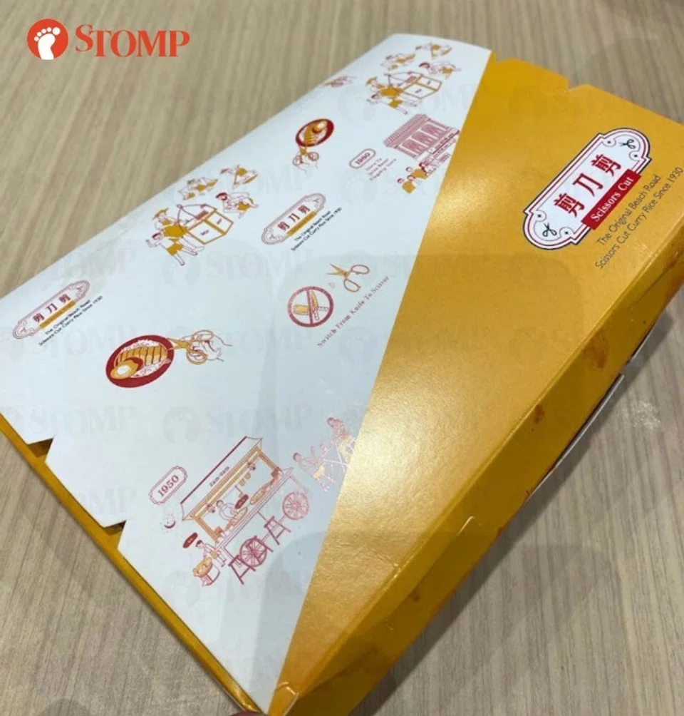She also had a similar experience at VivoCity's Beach Road Scissors Cut Curry Rice eatery, which charged $0.50 for a takeaway box "printed in colour and advertising their company name."