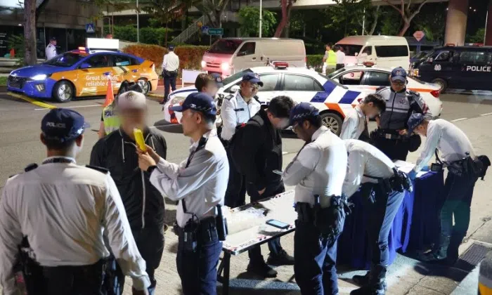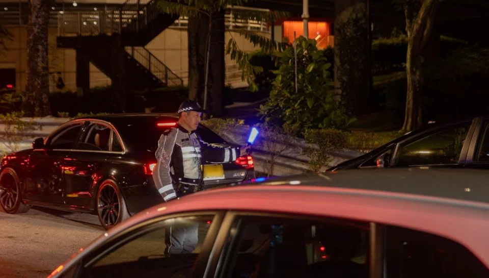 Traffic Police officers were conducting a roadblock along Upper Cross Street towards Central Expressway when a car stopped at a distance before the roadblock.