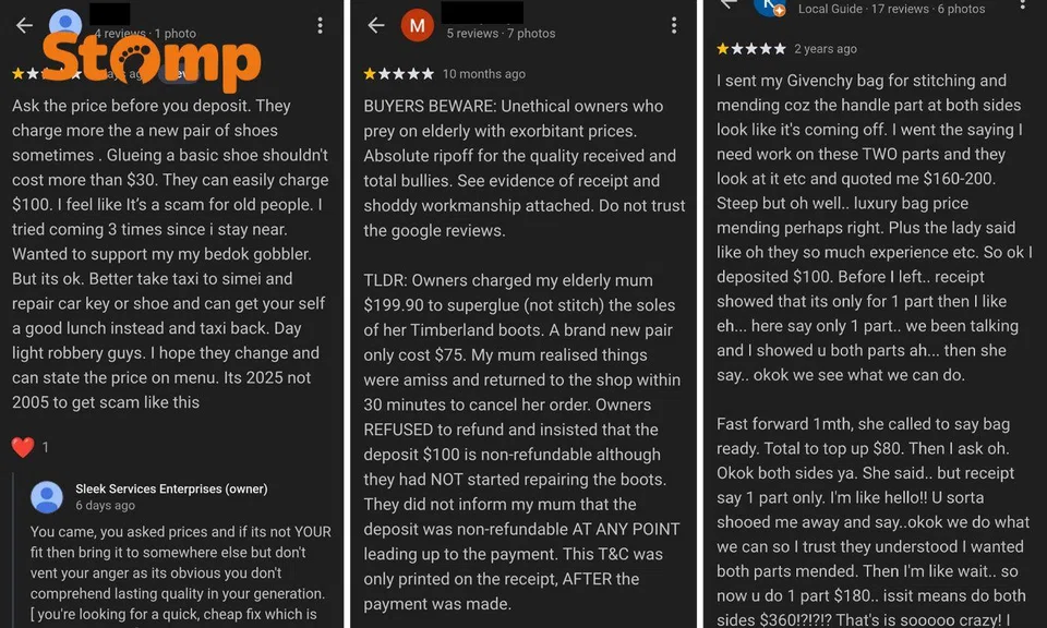 Woman feels cheated after Bedok cobbler charges $152 for glueing 2 pairs of shoes without stating price upfront
