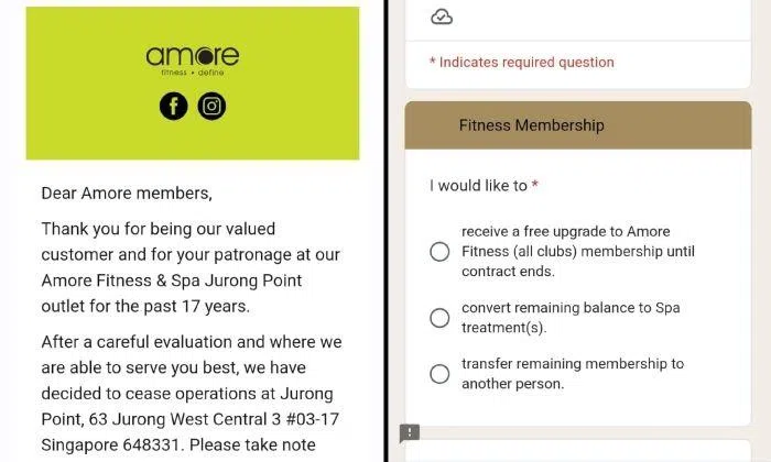 "We would like to address that Amore is relocating within the Jurong vicinity and thus have informed members of the coming closure at Jurong Point on Nov 9 as at Sept 12. Members were informed as soon as the company received confirmation of the changes and provided with alternative options for their existing membership at Jurong Point."