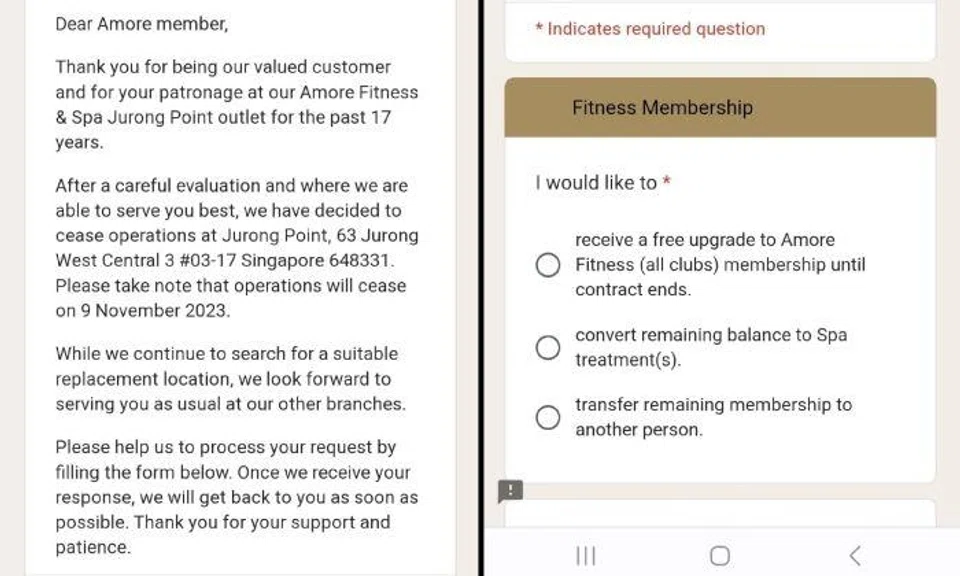 She posted in the Complaint Singapore Facebook group on Thursday (Nov 2): "I requested a refund, but Amore Fitness asked me to wait patiently till after closure. Only then can they give me an answer whether they can give me a refund or not."