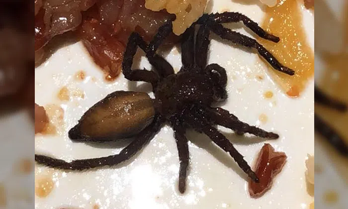 She and her friend were horrified when they discovered a "dead spider, limp and soaked with sauce, at the base" of the salad bowl, adding that the critter "wasn't small".