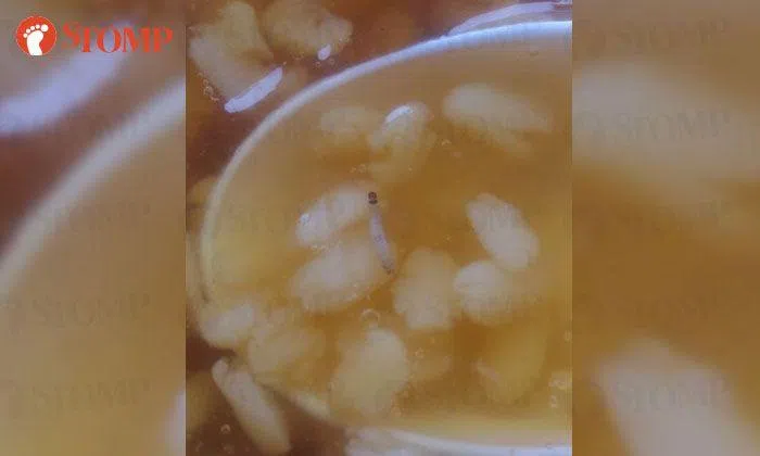 Stomper Yat found a worm in her tau suan, which she bought from a dessert stall from a food court at Taman Jurong Shopping Centre on Nov 17.
