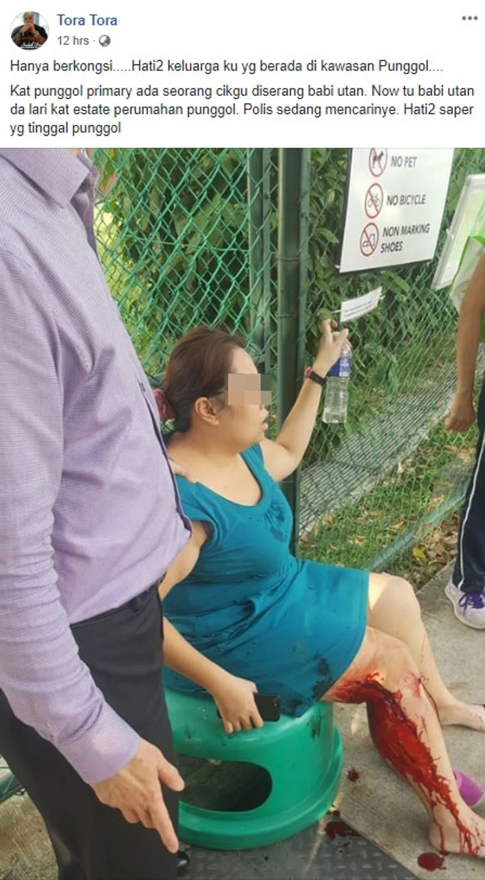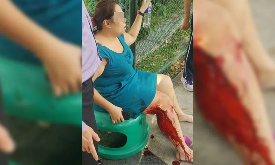 Stomper Sathiamoorthy alerted Stomp to a photo posted on Facebook of the woman with blood running down her right leg.