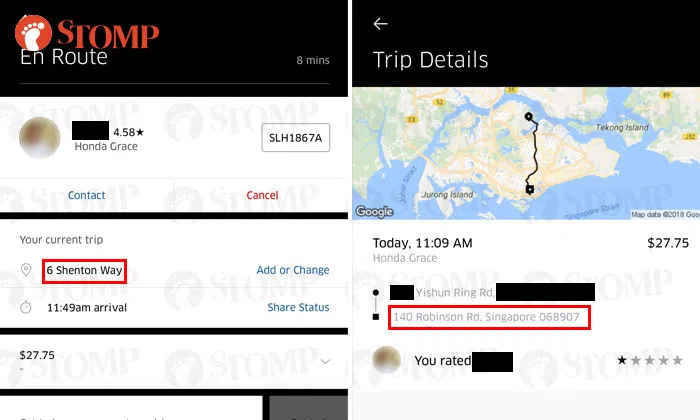 However, according to her app, the driver had alighted her helper and children at 140 Robinson Road.