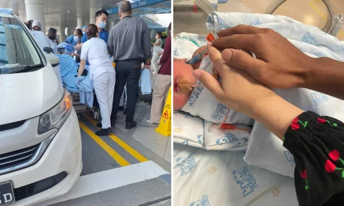 They were one traffic junction away from the hospital in the Novena area when she realised that they would not make it in time.