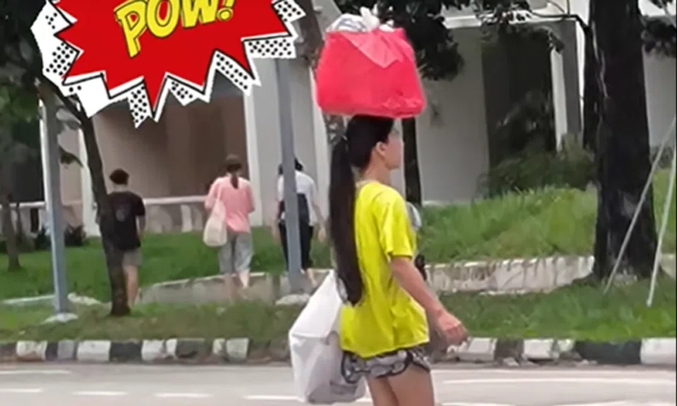 Woman hailed as 'amazing' for balancing groceries on her head in Bukit Batok