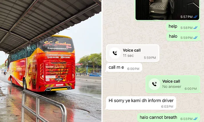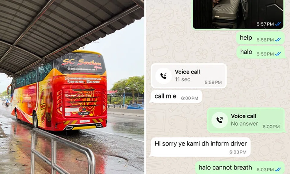 A young woman travelling from Kuala Lumpur to Johor Bahru experienced a terrifying ordeal after finding herself trapped inside the bus's luggage compartment.
