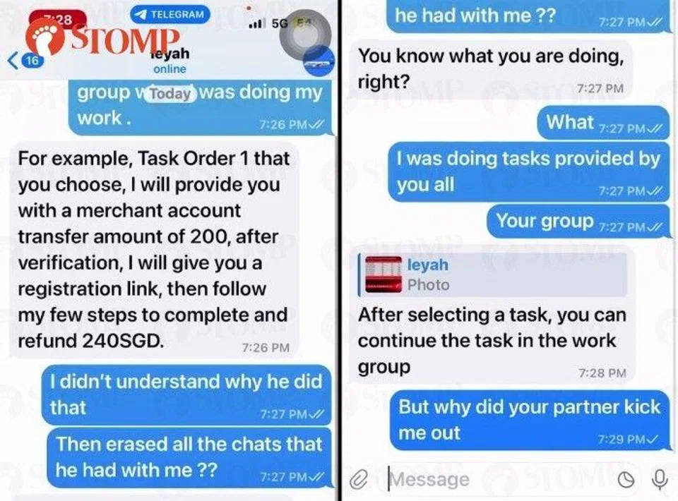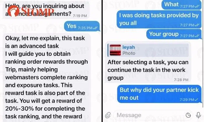 "They pay you $15, saying that we are promoting the business by liking them and making them appear in searches. After three such payments, they ask you to do a more advanced task – meaning you have to transfer them $200 to a PayNow number and then they would pay you back $240 within 15 minutes."
