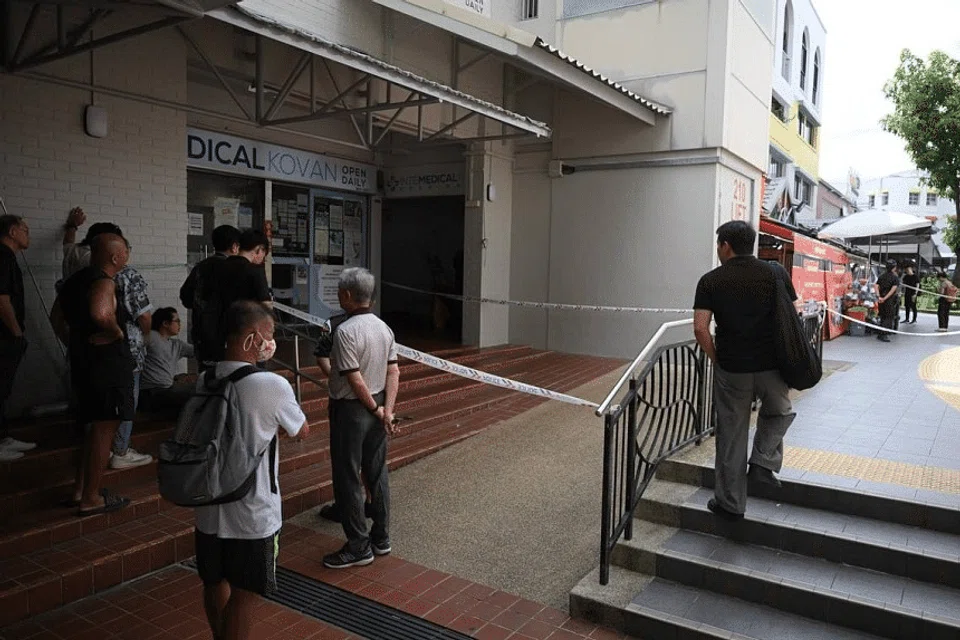 Staff at Intemedical Kovan, a clinic next to the hardware shop, said Dr Chong Wen Yu had gone out to help those injured during the incident. ST PHOTO: SHINTARO TAY