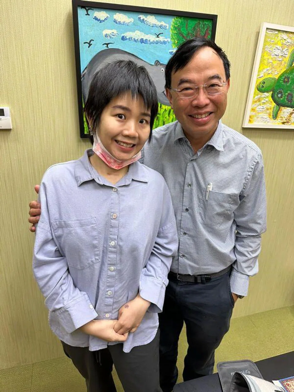 The treatment was successful and Ms Poon has been cancer-free since December 2022, although her left wrist and ankle are still weak from the stroke.
