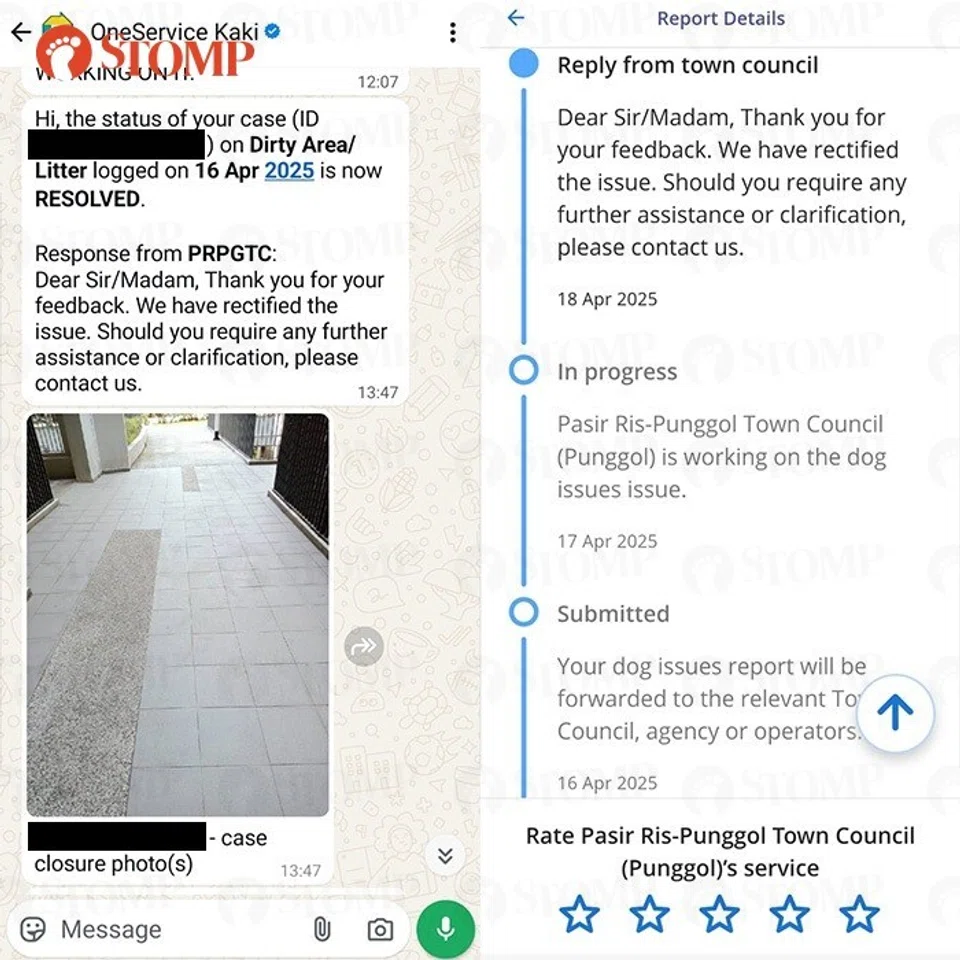 "Numerous complaints were made to the town council and NParks. Most of them were done via the LifeSG app. They are rectified but we the residents don't know what has been done.