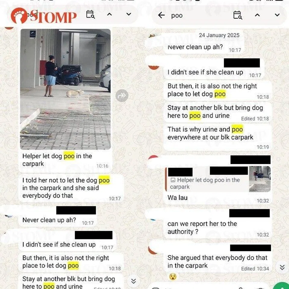 “This maid lets the dog poo and does not pick up the poo. When approached by one of the residents, she replied that everyone also does that," the Stomper added.
