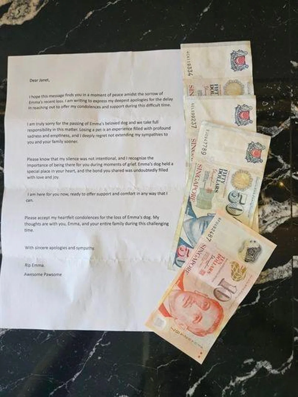 It gave the family a refund, but Ms Tan said she sent the money back, as she was offended by an “insensitive” note that accompanied it, and also because she felt no amount could make up for losing Emma.