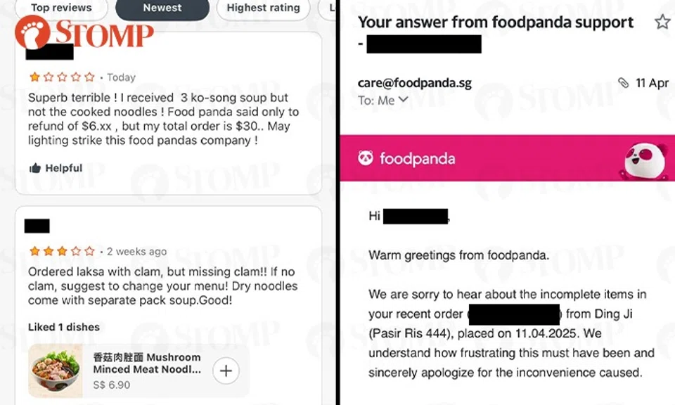 Woman left defeated after Foodpanda sends incomplete order, gives $6.83 refund for $30.69 meal