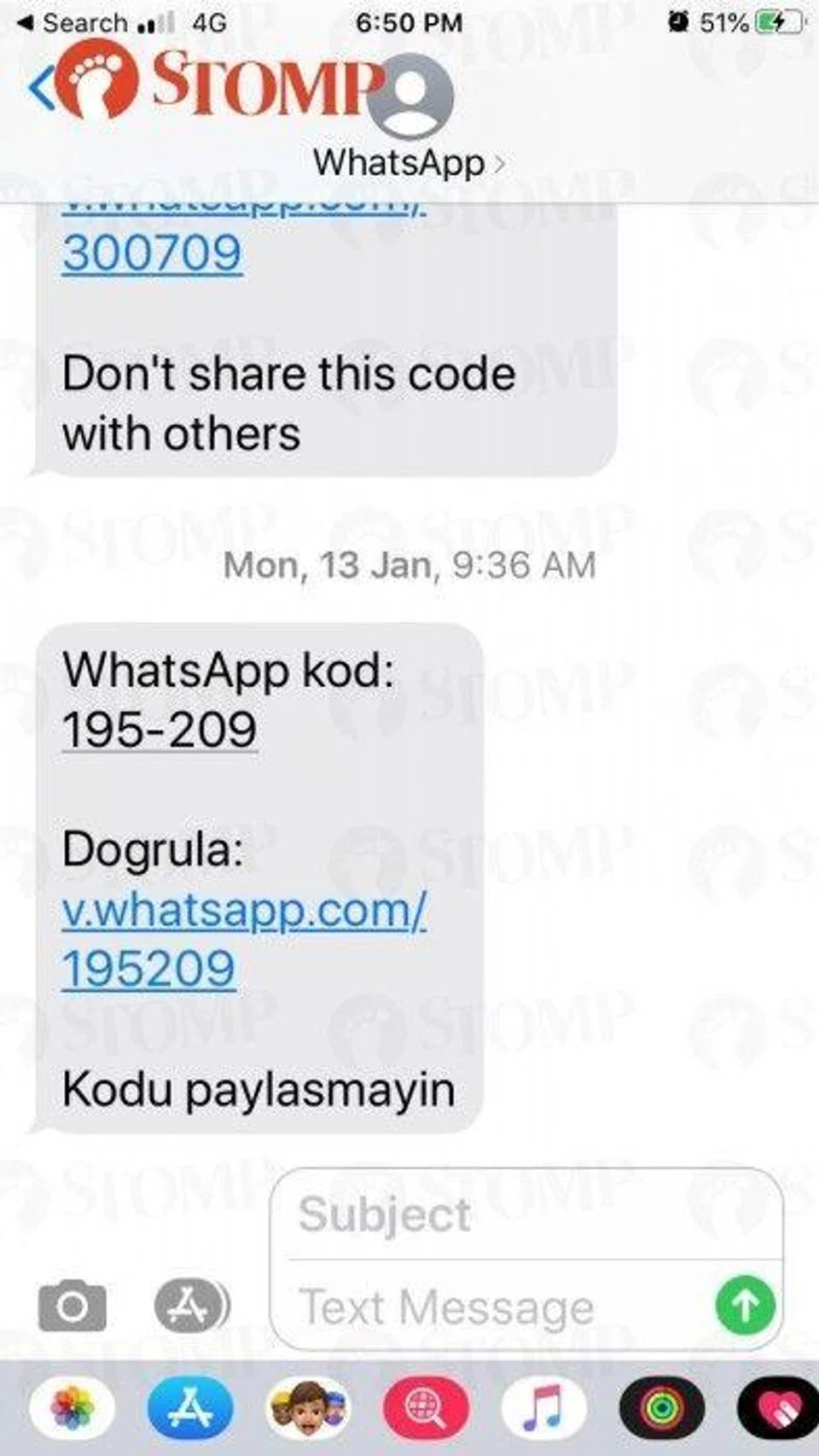 A screenshot of this message shows that it was sent from "WhatsApp" in a foreign language.
