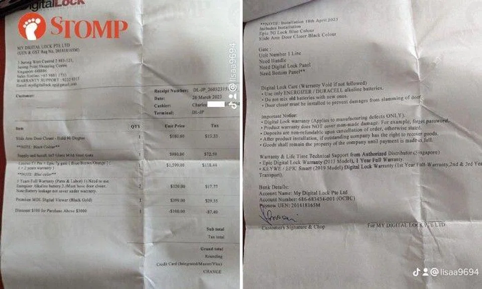 Stomper Lisa said she ordered the gate with a digital lock at the Jurong Point outlet on March 26.