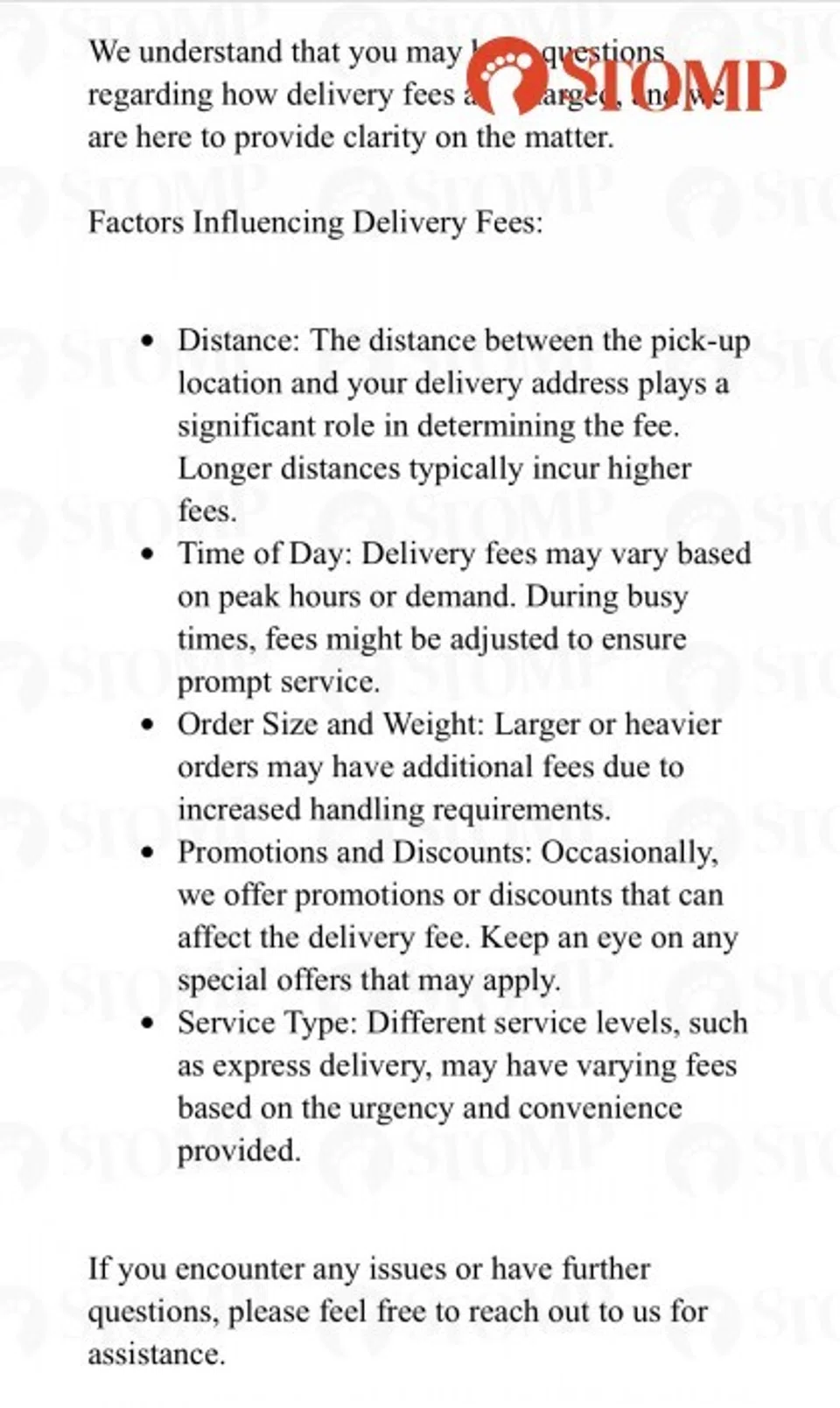 "I asked why I'm paying that kind of price yet the driver needs to make so many deliveries in one trip," said the Stomper, who shared a screenshot of Grab's reply about factors influencing delivering fees.
