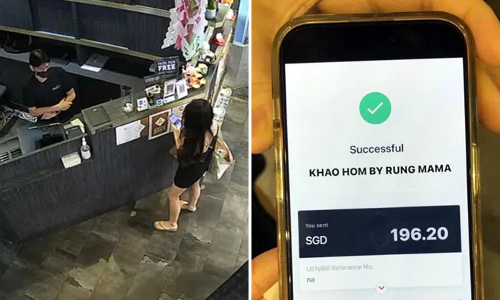 "She ordered about $138.10 worth of food and showed a screenshot of the PayNow transfer at the counter."