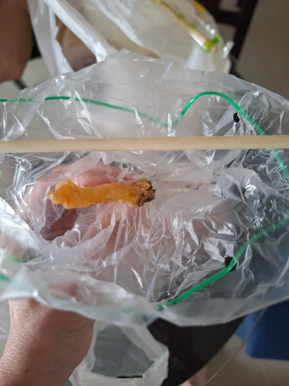 Ms Chua shared a photo comparing a piece of fried fish with a disposable wooden chopstick and declared the fish as thin as the chopstick.