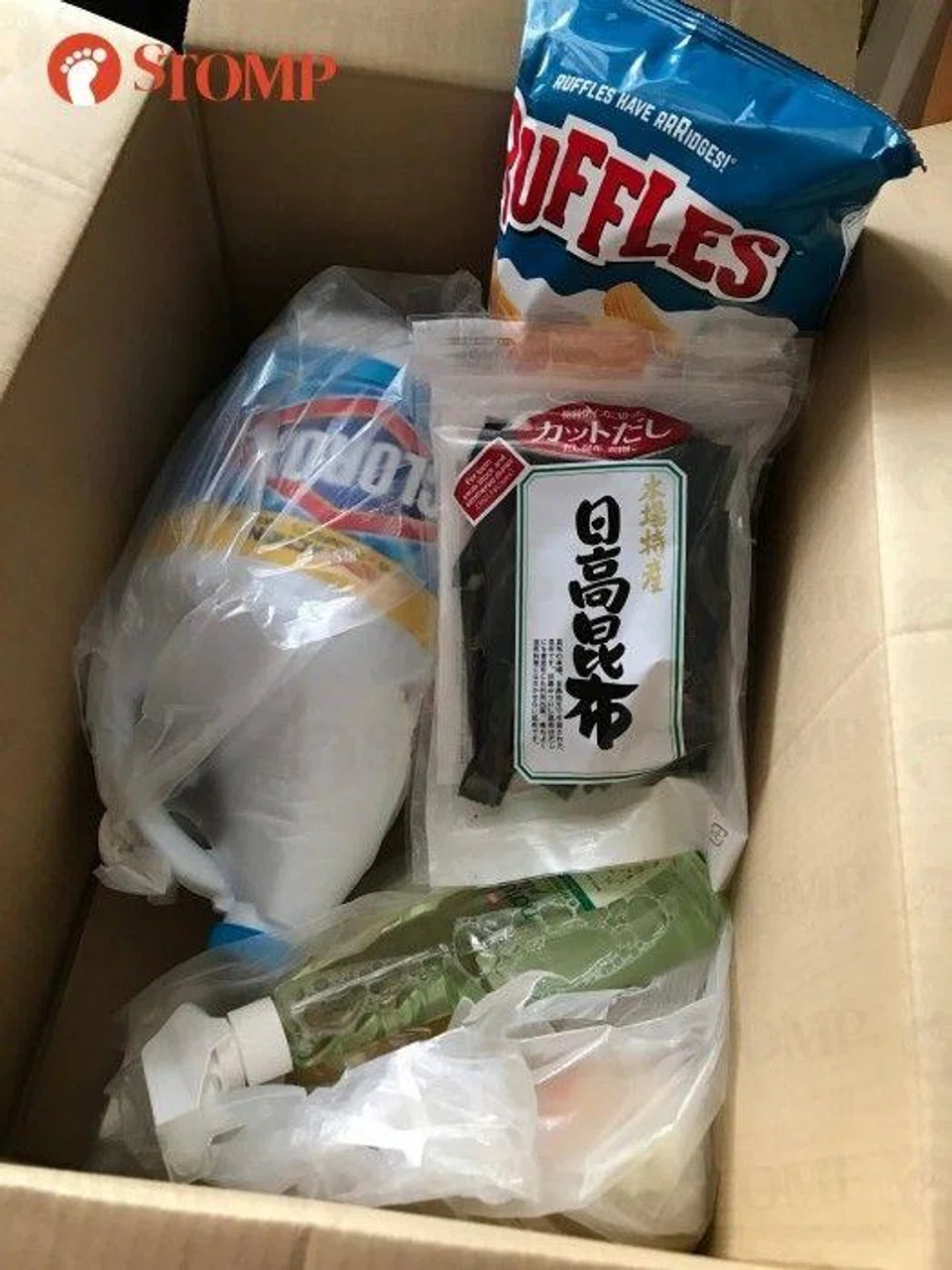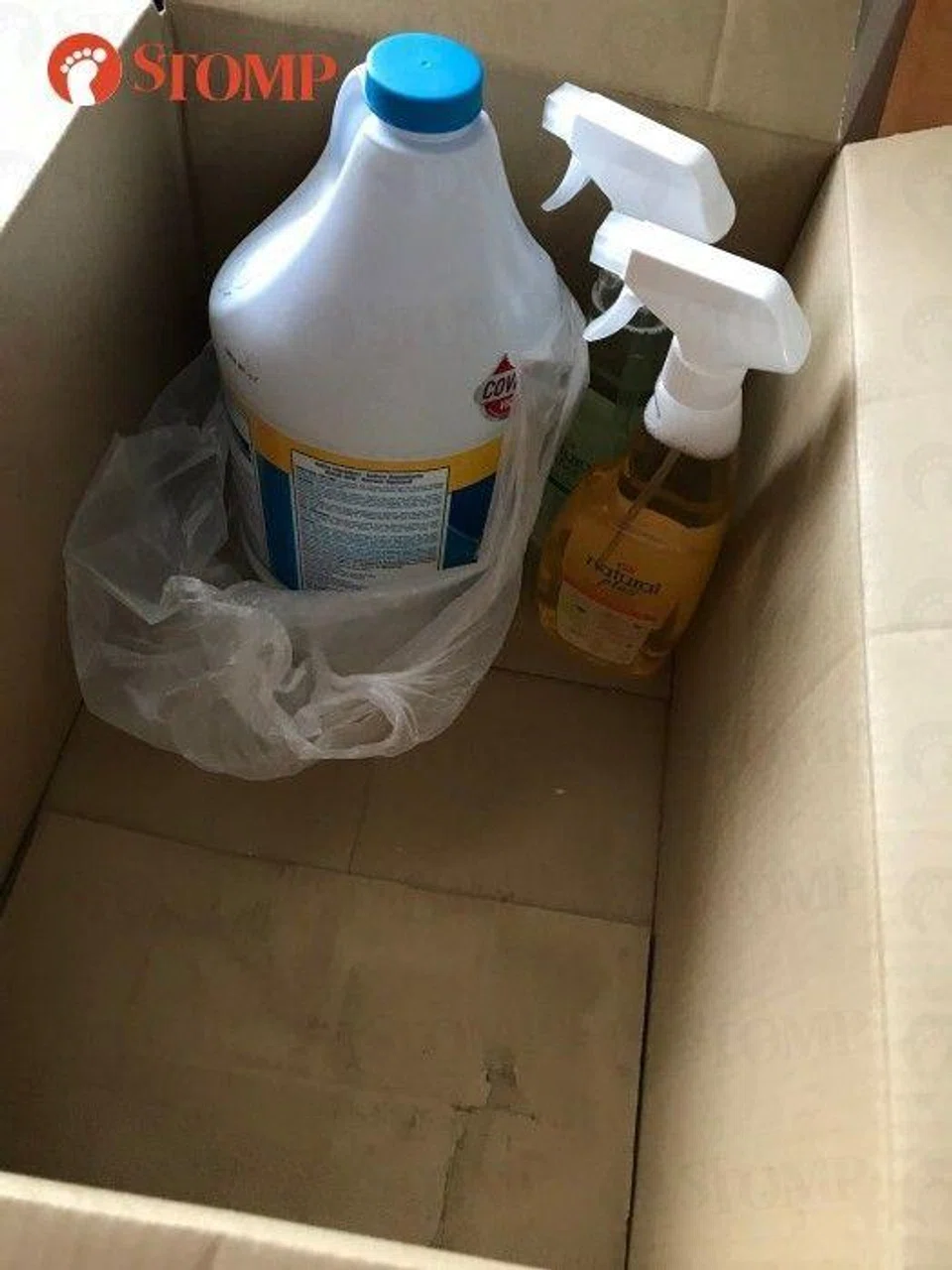 Stomper Sor Hong said she received her delivery on Monday (Mar 13) at about 4.30pm and found that Clorox bleach and bathroom cleaner had been packed together with kitchen items like flour and kelp.