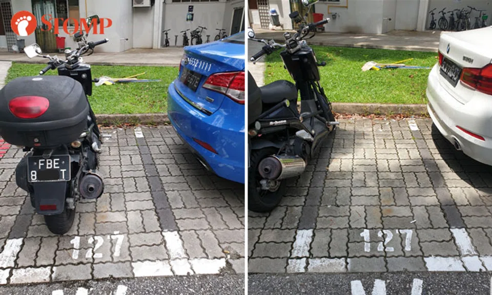 Woman shocked to find her motorbike outside lot and scratched up after parking at West Coast carpark