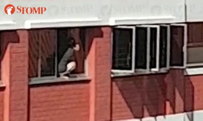 Stomper Ong was concerned when he spotted a woman squatting precariously on the ledge of a window to clean windows at Block 14 Toh Yi Drive on Sunday (Aug 26) at about 9.30am.