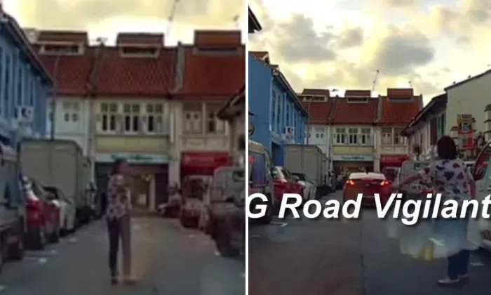 A woman stood in the middle of a road and blocked traffic to reserve a parking space for a car in Little India.