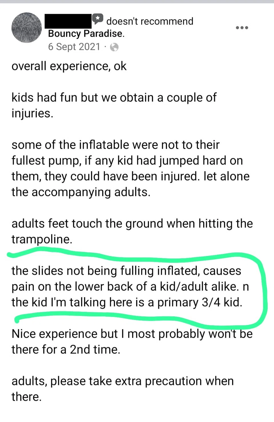On Friday (Jan 20), a Bouncy Paradise spokesman responded to Stomp regarding the incident and said they are aware of the situation and have been corresponding with the customer.