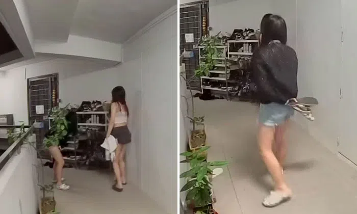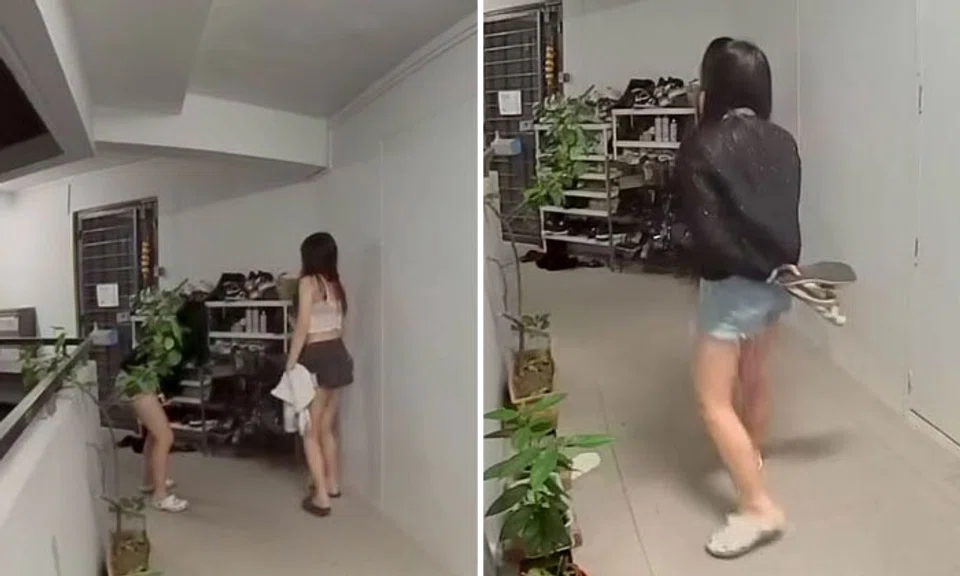 In clips shared by the mother, two girls can be seen looking at the resident's shoe rack.