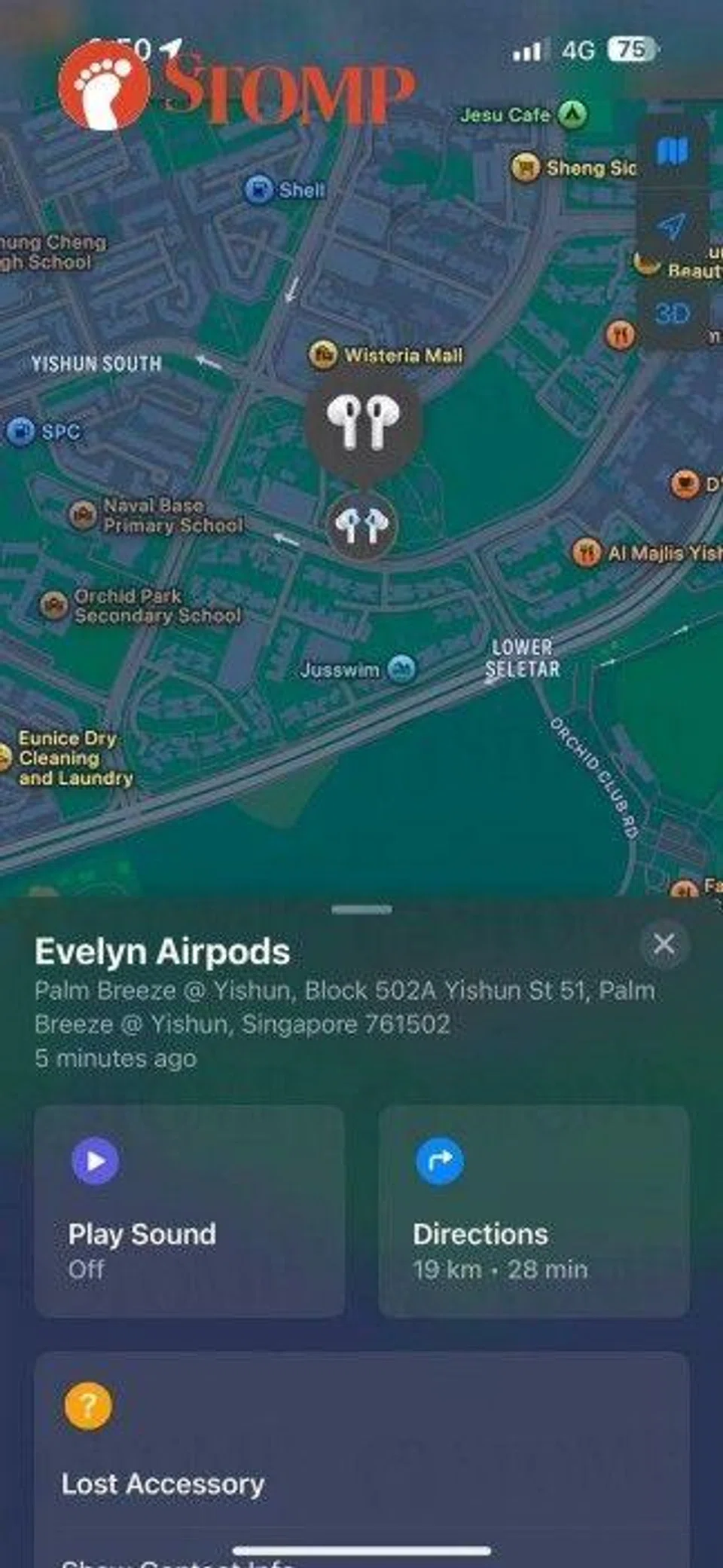 Evelyn told Stomp on Aug 28: "I have since lost contact with the AirPods, but I'm not sure if it's because the battery died or someone resetted it."
