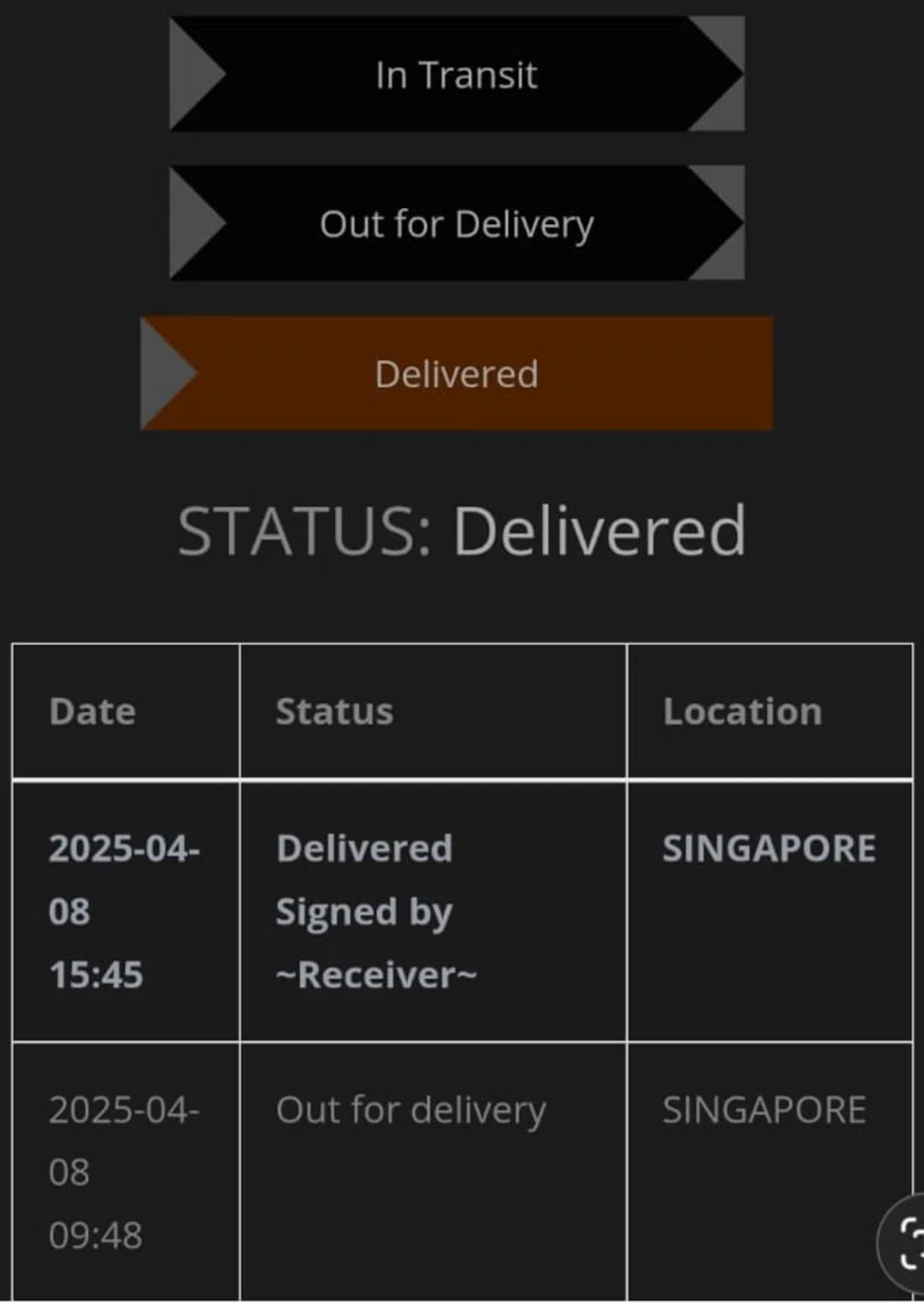 The delivery status was marked as delivered and signed for by recipient at 3.45pm on April 8.