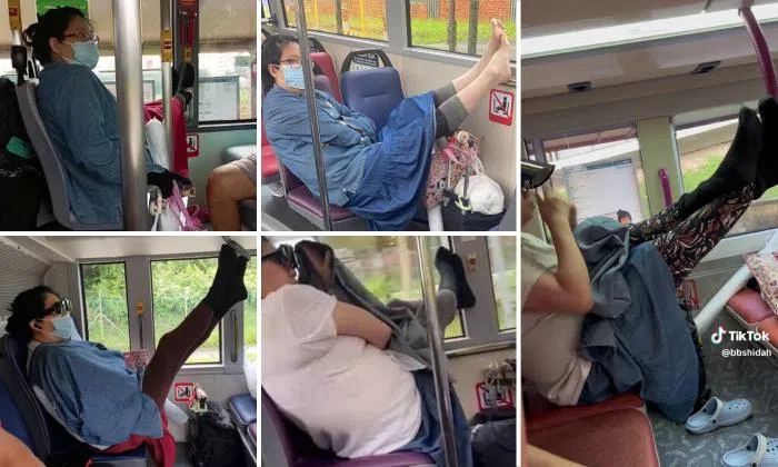 In that video, posted on TikTok, the woman is seen putting up her feet against the side of a bus.