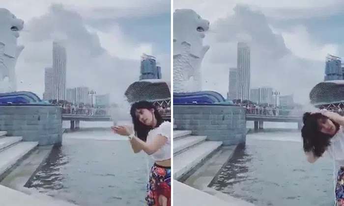 However, this woman, who is believed to be a tourist, did her own quirky take with the Merlion.