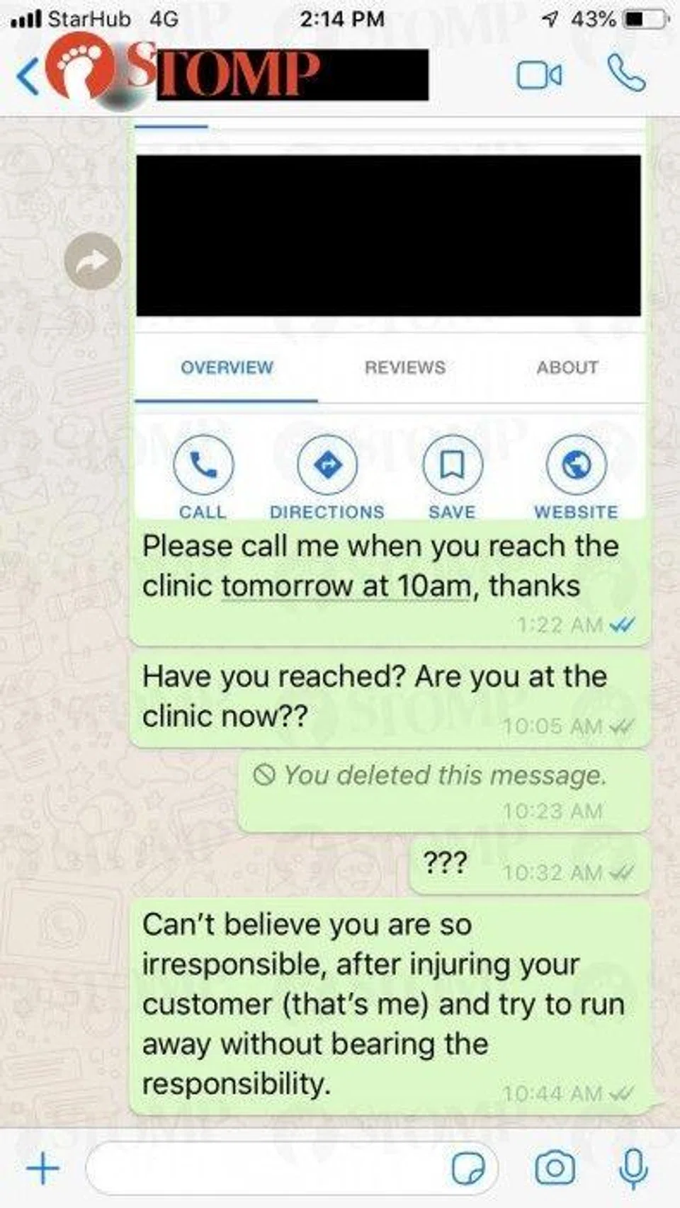 "I told her to come down to my neighbourhood in Sengkang the next day where I would visit a doctor to make sure there was no infection.