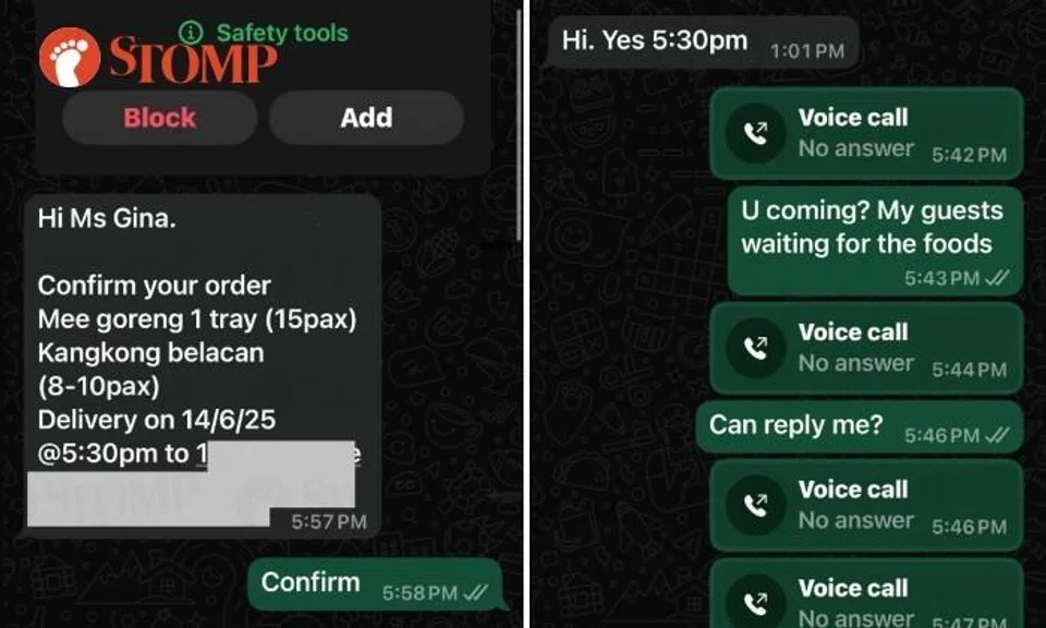 She recounted: "On June 9, I paid $60 via PayNow to this seller for two dishes - mee goreng and kangkong balacan - which were to be delivered for my gathering on June 14 at 5.30pm.