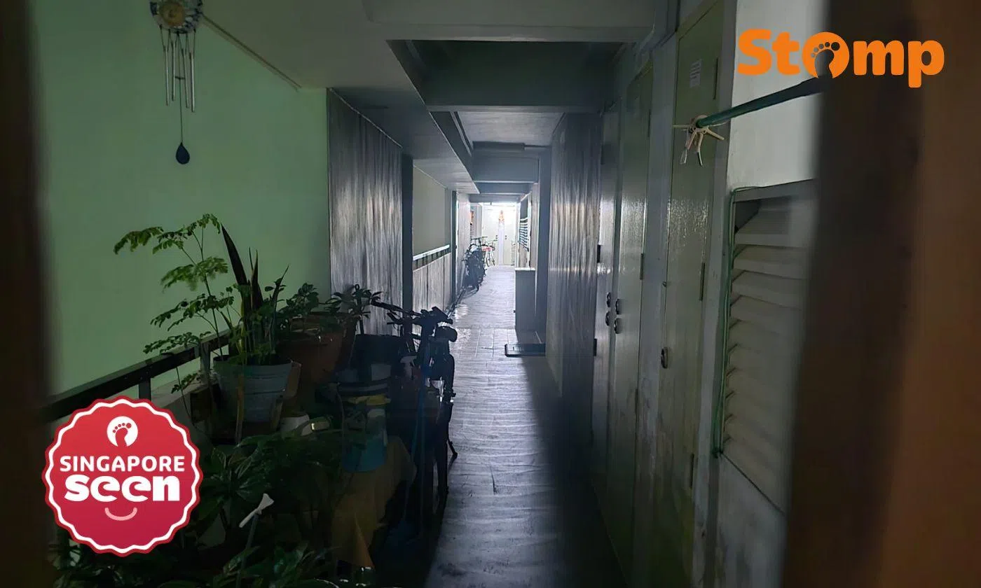 Stomper Mau said his parents had difficulty navigating the corridor at Block 520 Woodlands Drive 14 after the lights were not working on the first and second day of Chinese New Year (Feb 17 and Feb 18).