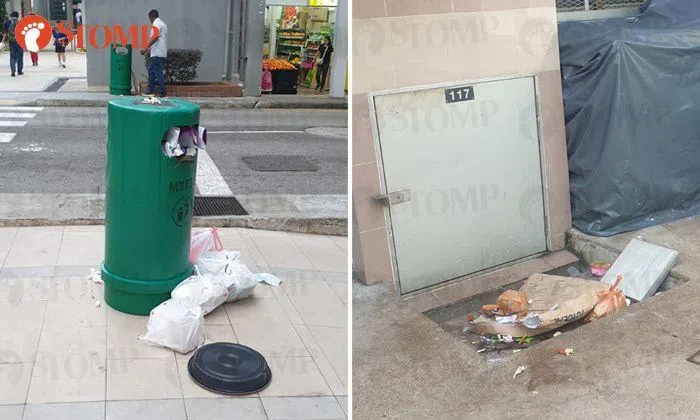Photos he took on Feb 22 (Thursday evening) and Feb 25 (Sunday late morning) show uncleared trash and overflowing dustbins at various locations.