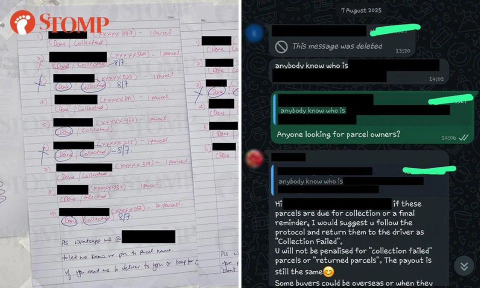 A Shopee collection point in Woodlands has drawn concern after the operator pasted notices listing buyers' names and partial phone numbers for uncollected parcels.