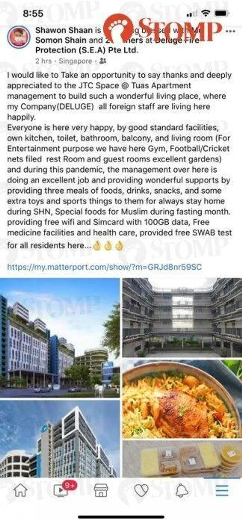 Stomper Shawon said that he has spent the past two weeks at JTC Space @ Tuas, a medical post facility that houses foreign workers.