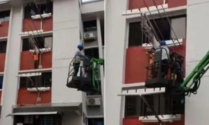 Its spokesman added that the child was rescued by a worker in a boom lift before SCDF officers arrived at the scene.