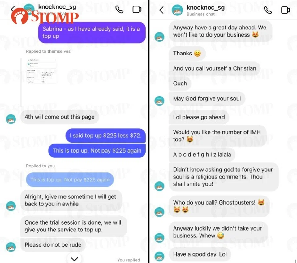 Stomper Shien said she contacted a company called Knoc Knoc about a cleaning package via Instagram on July 5.