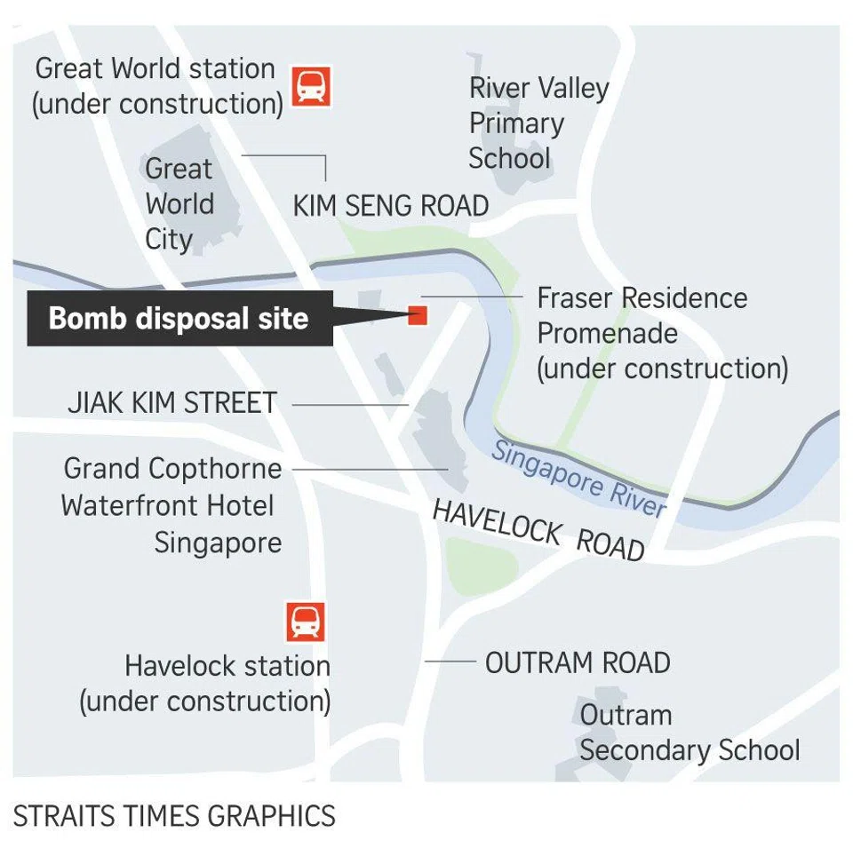 Earlier in the day, police, soldiers and residents of nearby condominiums and hotel guests prepared for the controlled detonation of the bomb by the Singapore Armed Forces Explosive Ordnance Disposal team.